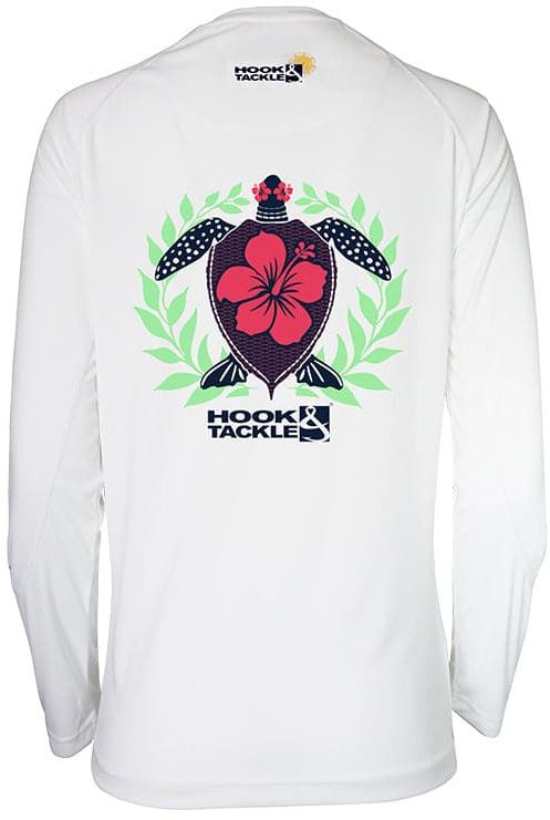Hook & Tackle Womens Hibiscus Turtle Fishing L/S Shirt - White